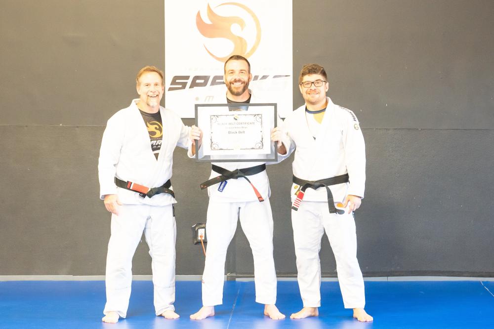 The road to black belt was anything but easy. Rich endured multiple injuries that required surgeries and long rehabilitations — challenges that tested his perseverance and faith. Each time, however, he returned to the mats stronger and more determined than before, using adversity as fuel for improvement.